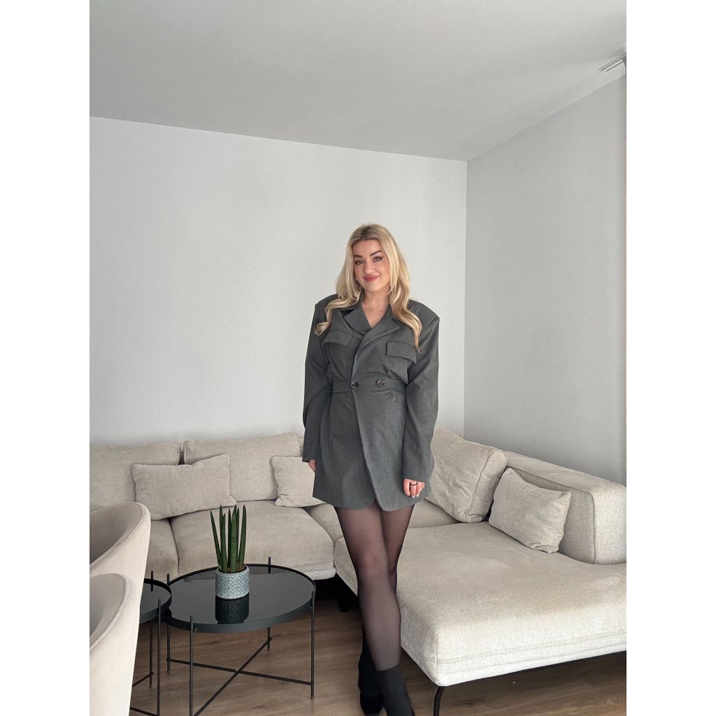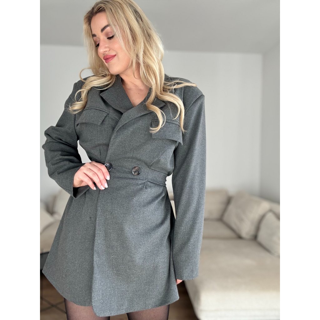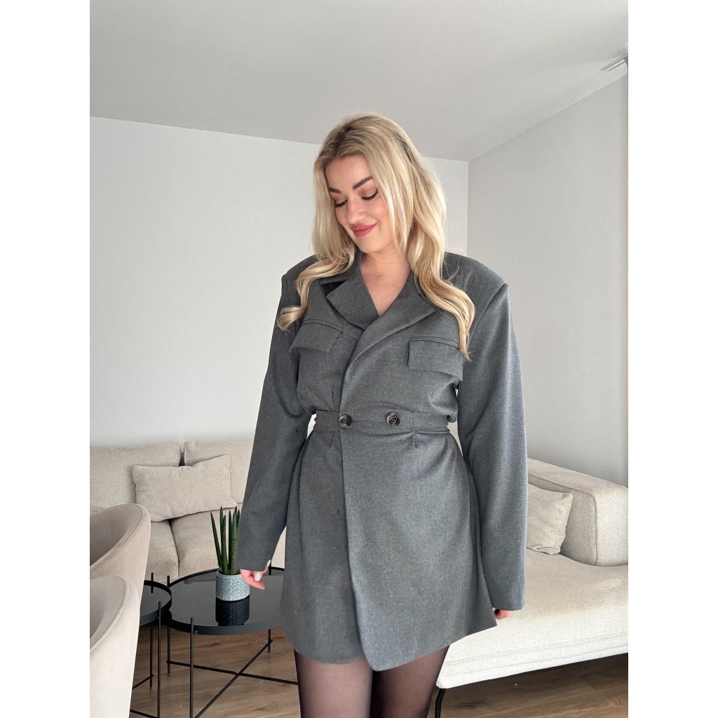 Zaujímavé dámske šaty v oversize strihu, ktoré môžete nosiť aj ako predĺžené sako. Sú ušité z kvalitného materiálu. Tieto sakové šaty sú ideálna voľba pre ženy, ktoré milujú štýl a eleganiu zároveň. Je to krásny kúsok do šatníka.
