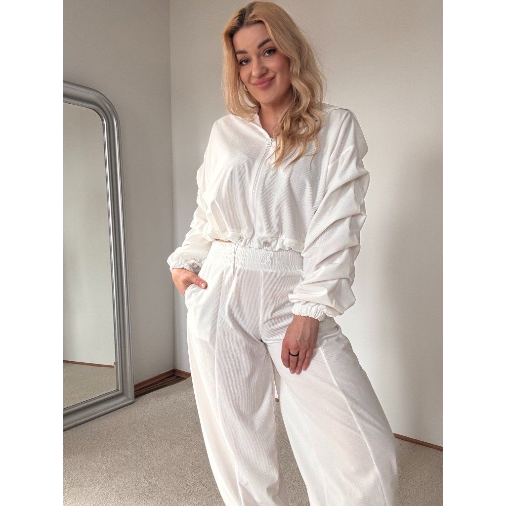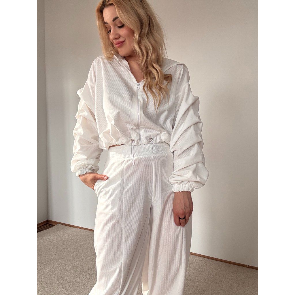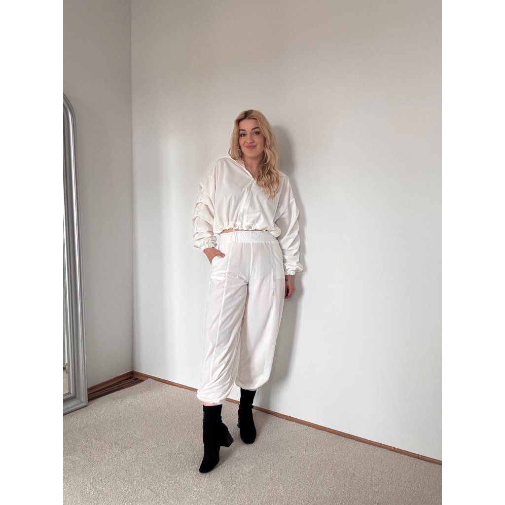 Pohodlný dámsky komplet pozostávajúci z nohavíc, ktore majú gumu v pase, vďaka ktorej sa krásne prispôsobia a mikiny s kapucňou. Materiál je veľmi kvalitný, príjemný a pohodlný.