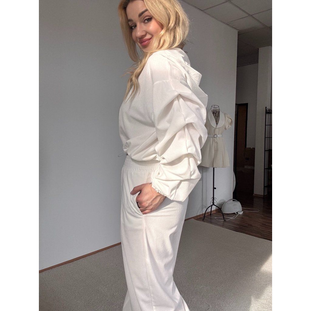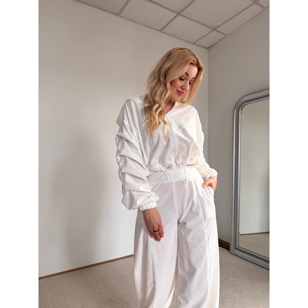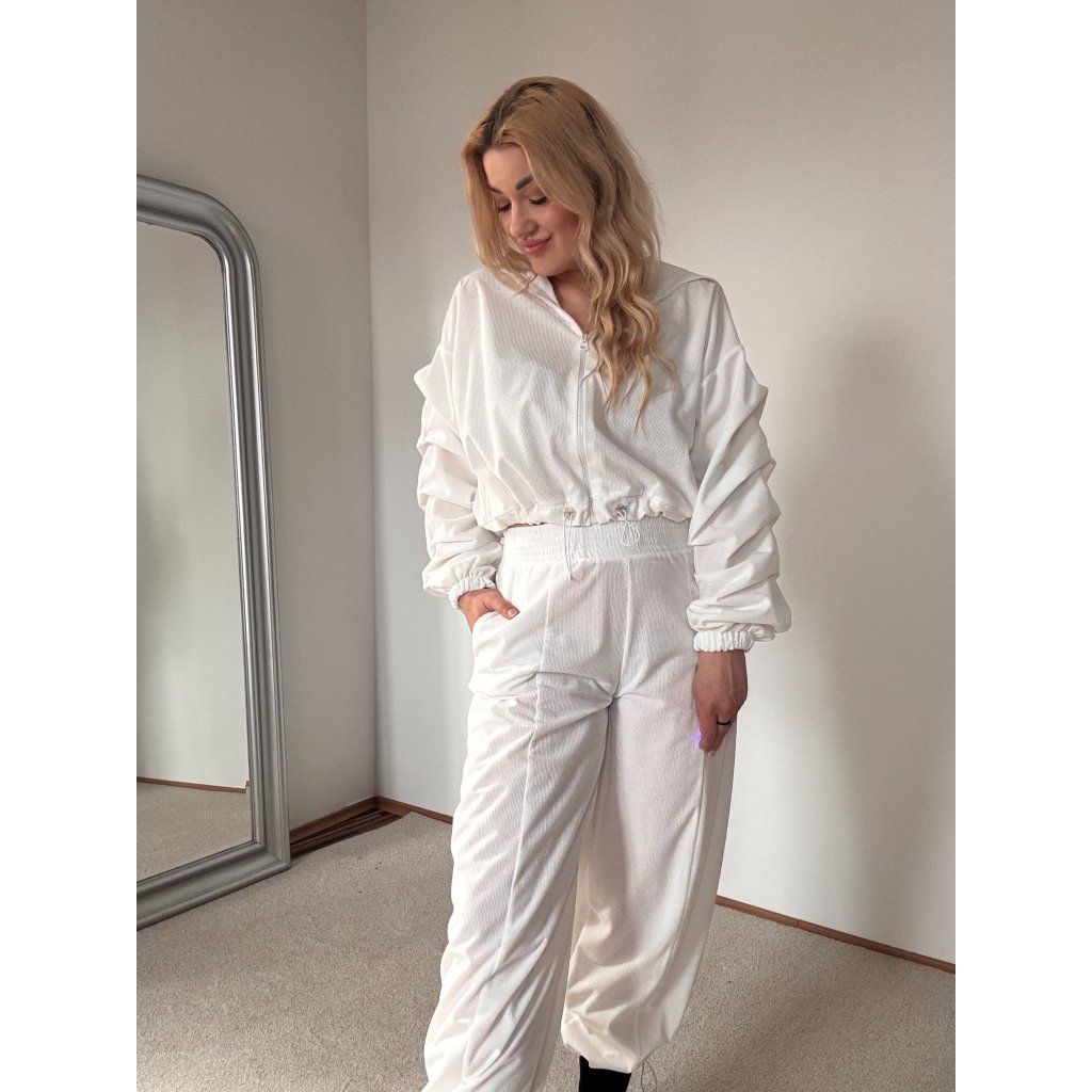 Pohodlný dámsky komplet pozostávajúci z nohavíc, ktore majú gumu v pase, vďaka ktorej sa krásne prispôsobia a mikiny s kapucňou. Materiál je veľmi kvalitný, príjemný a pohodlný.